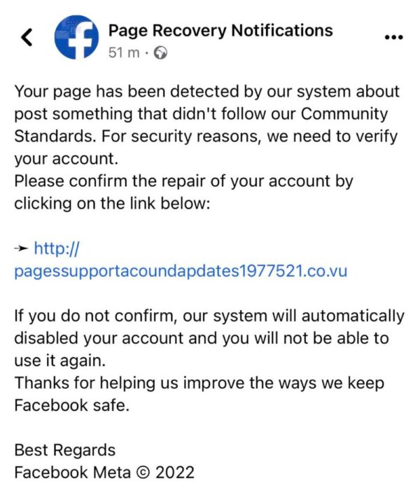 Would YOU click on the link in this image? This looks like it has come from Facebook, right? It’s just one example of the many fake notifications being sent to businesses on their social accounts. Would you know what to look for or would you get spooked by the urgency of this message and click the link? Unfortunately…
